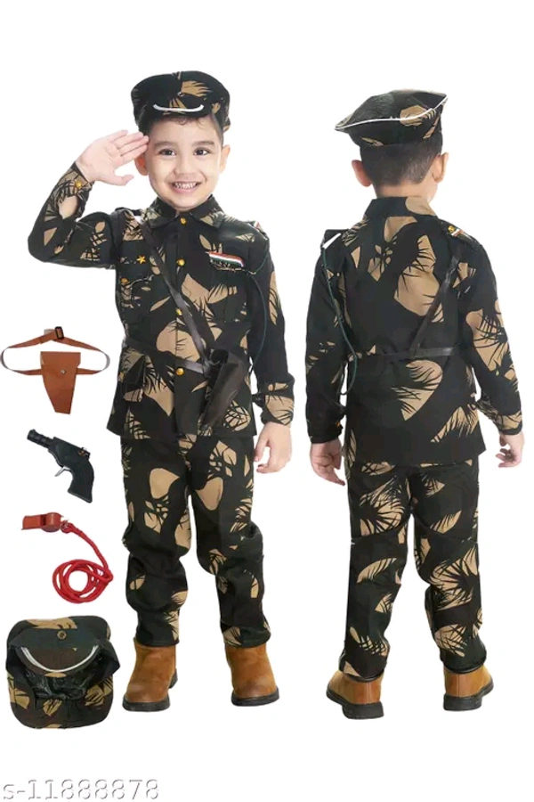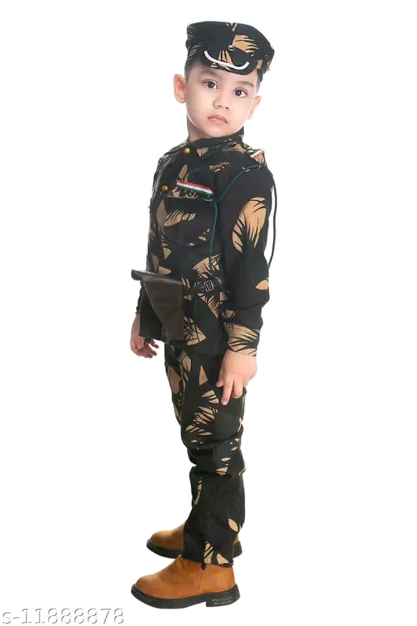 Name: BOYS PRINTED ARMY OR BSF DRESS WITH CAP WHISTEL ROPE GUN GUN COVER FOR FANCY DRESS COMPITITION OR REGULAR WEAR