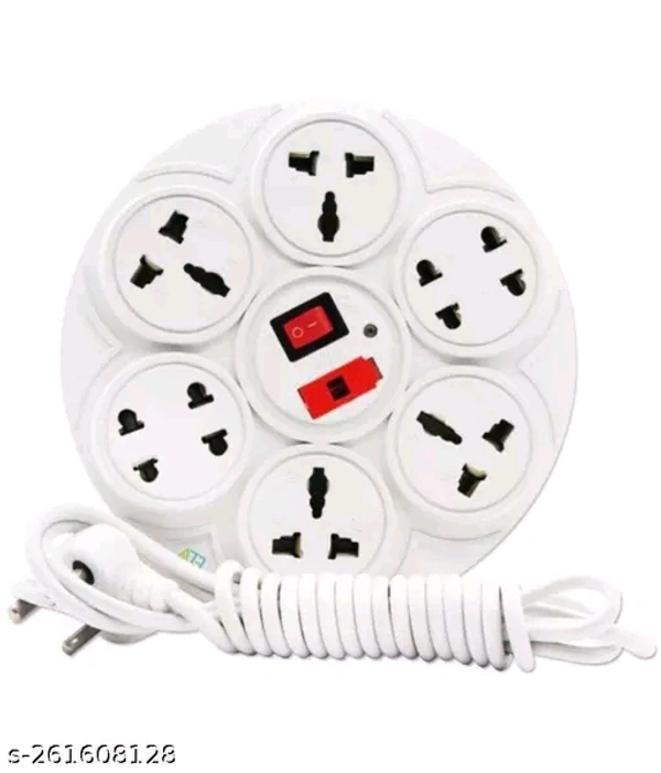 Name: Round Extension Cord White Plastic Extension Board with 2m Long Wire & Universal Fit Design 8 Socket Extension Board
